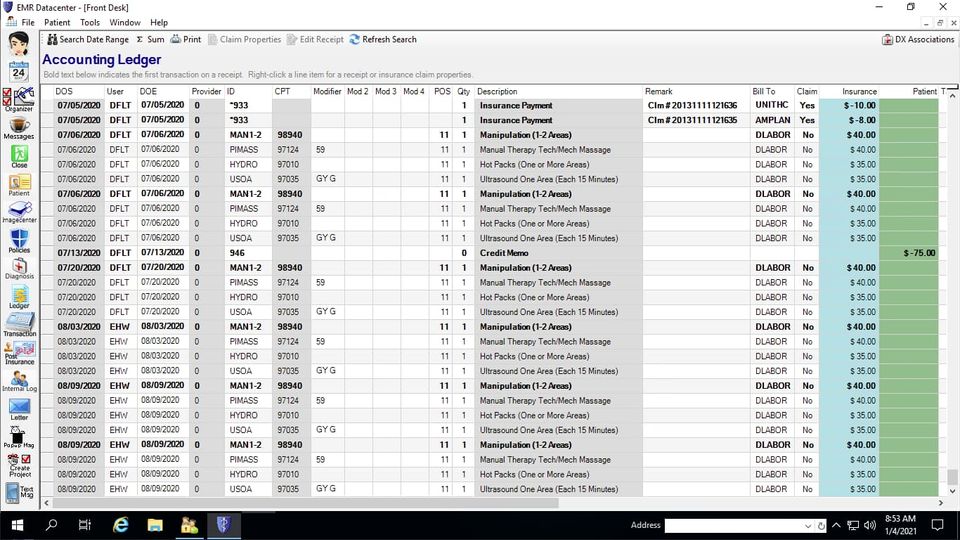 EMR Datacenter is the Chiropractic Software used for the below functionalities.