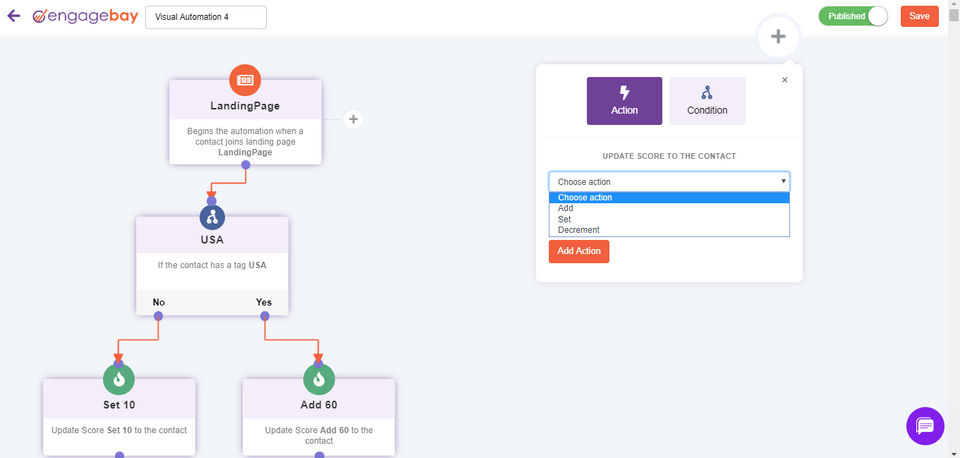 EngageBay is the Marketing Automation Software used for the below functionalities.