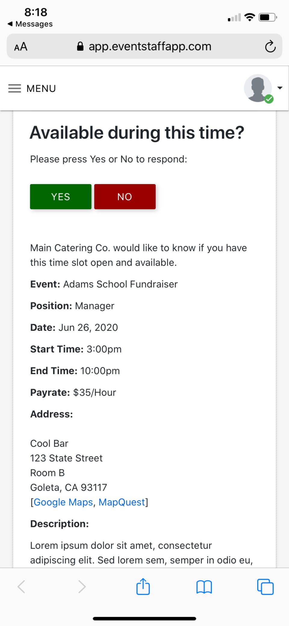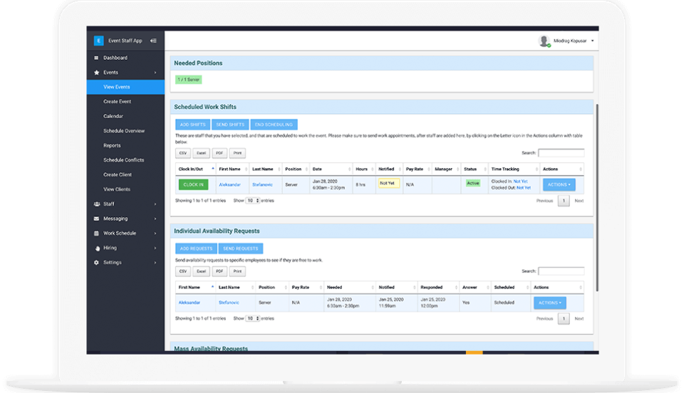 - Company Name: Event Staff App