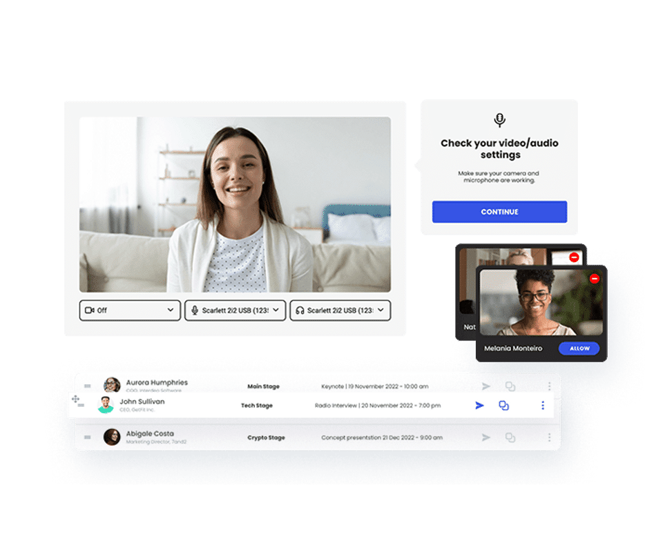 BOOK A DEMO- Event customization Event website with custom branding Custom domain + SSL Multi track events Parallel stages - 4 Sponsor expo booths per event - Unlimited Integrations Event interface in multiple languages Custom e-mail notifications Event duration - 72hours Add-ons