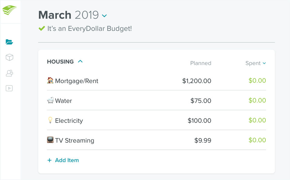 EveryDollar is the Personal Finance Software used for the below functionalities.