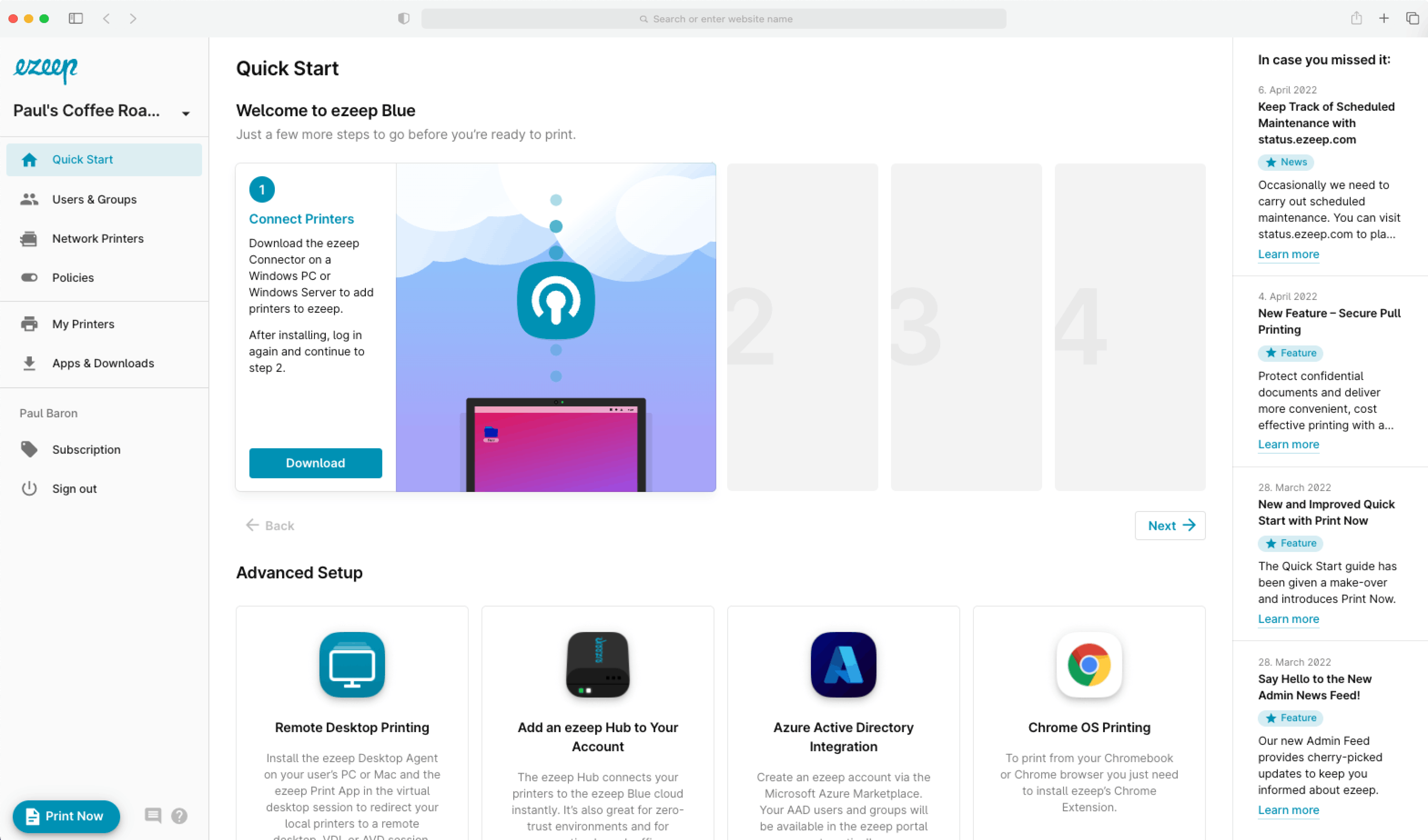 ezeep is allowed 0 Days Free Trial.