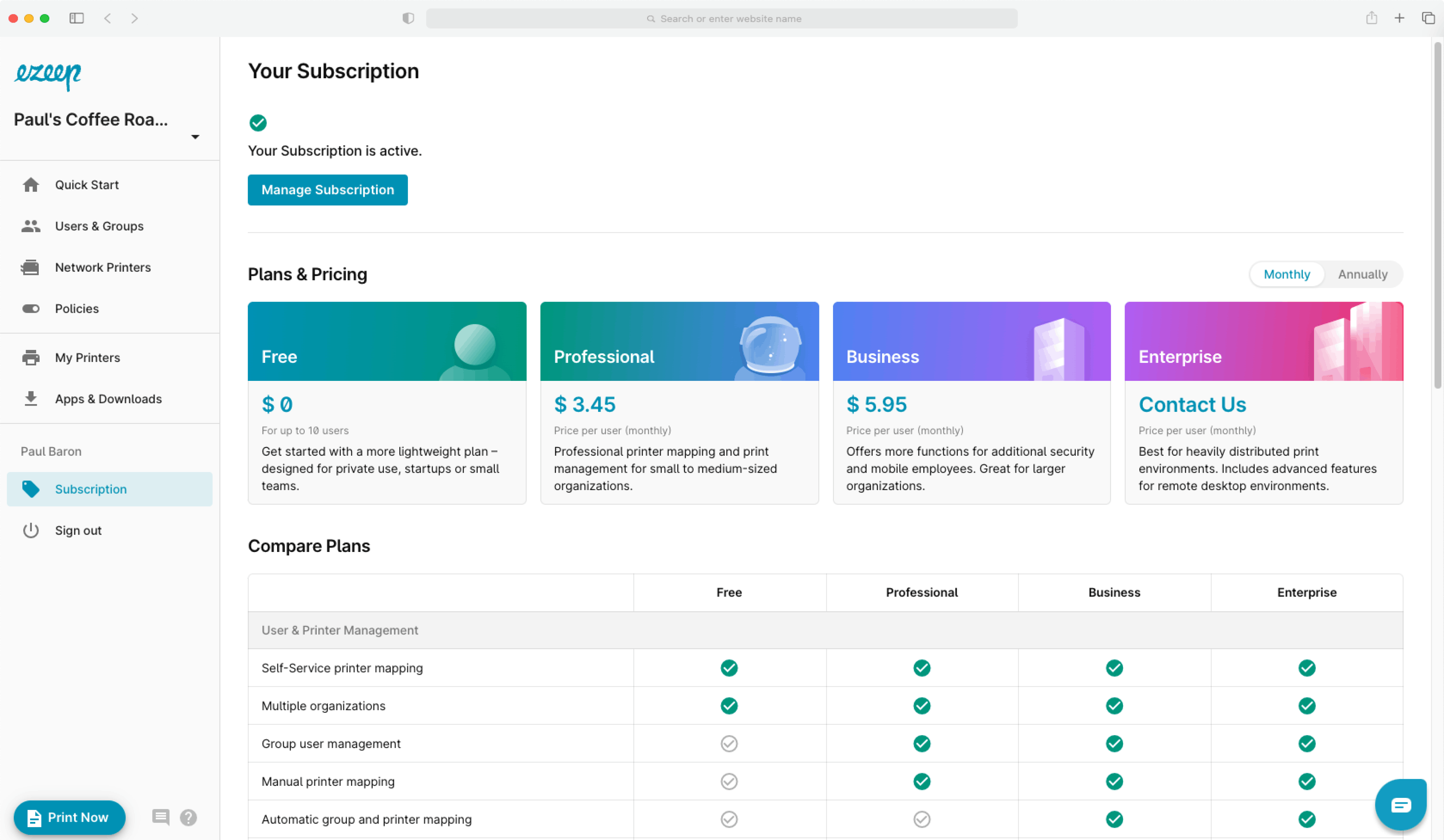 ezeep has 1 plans,