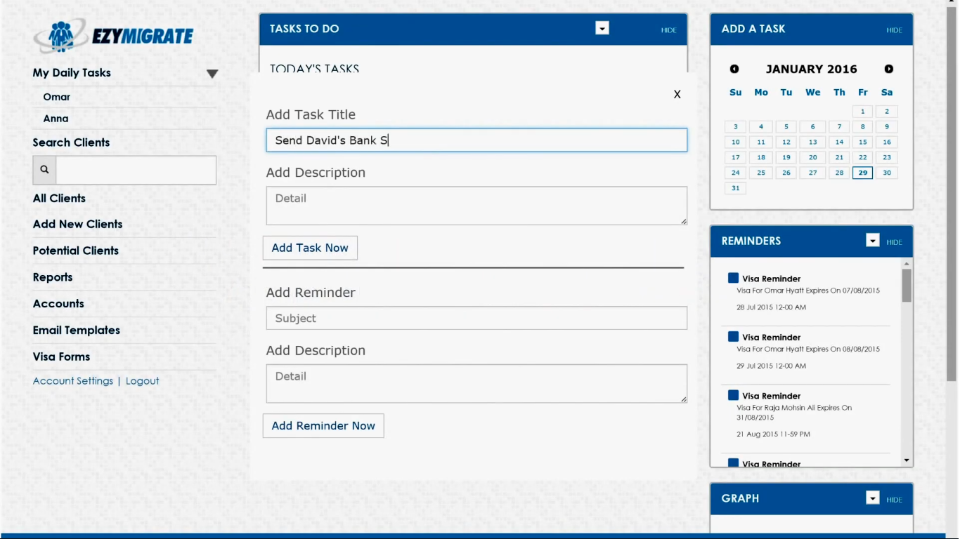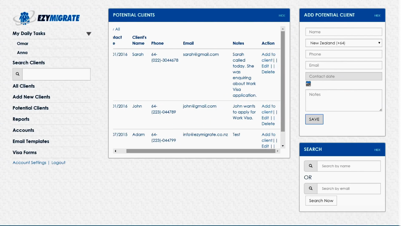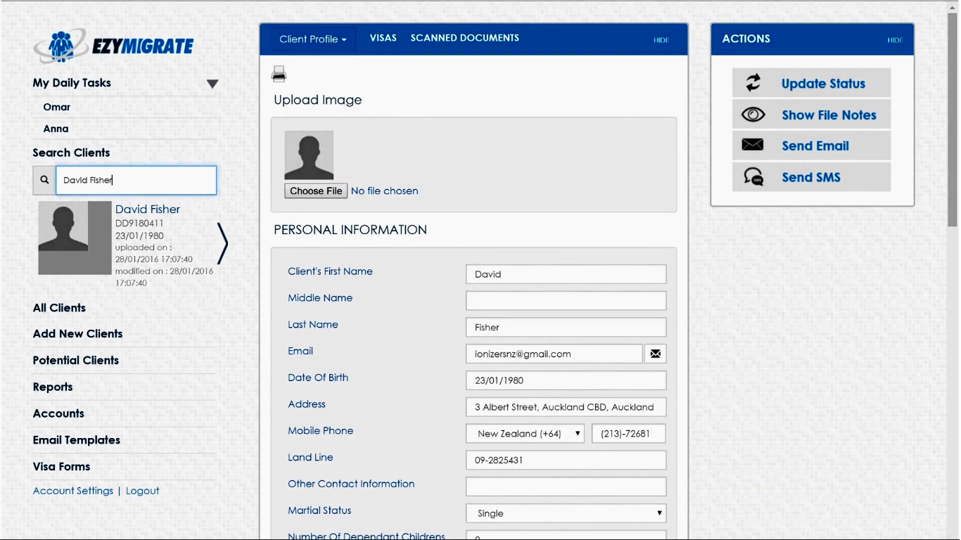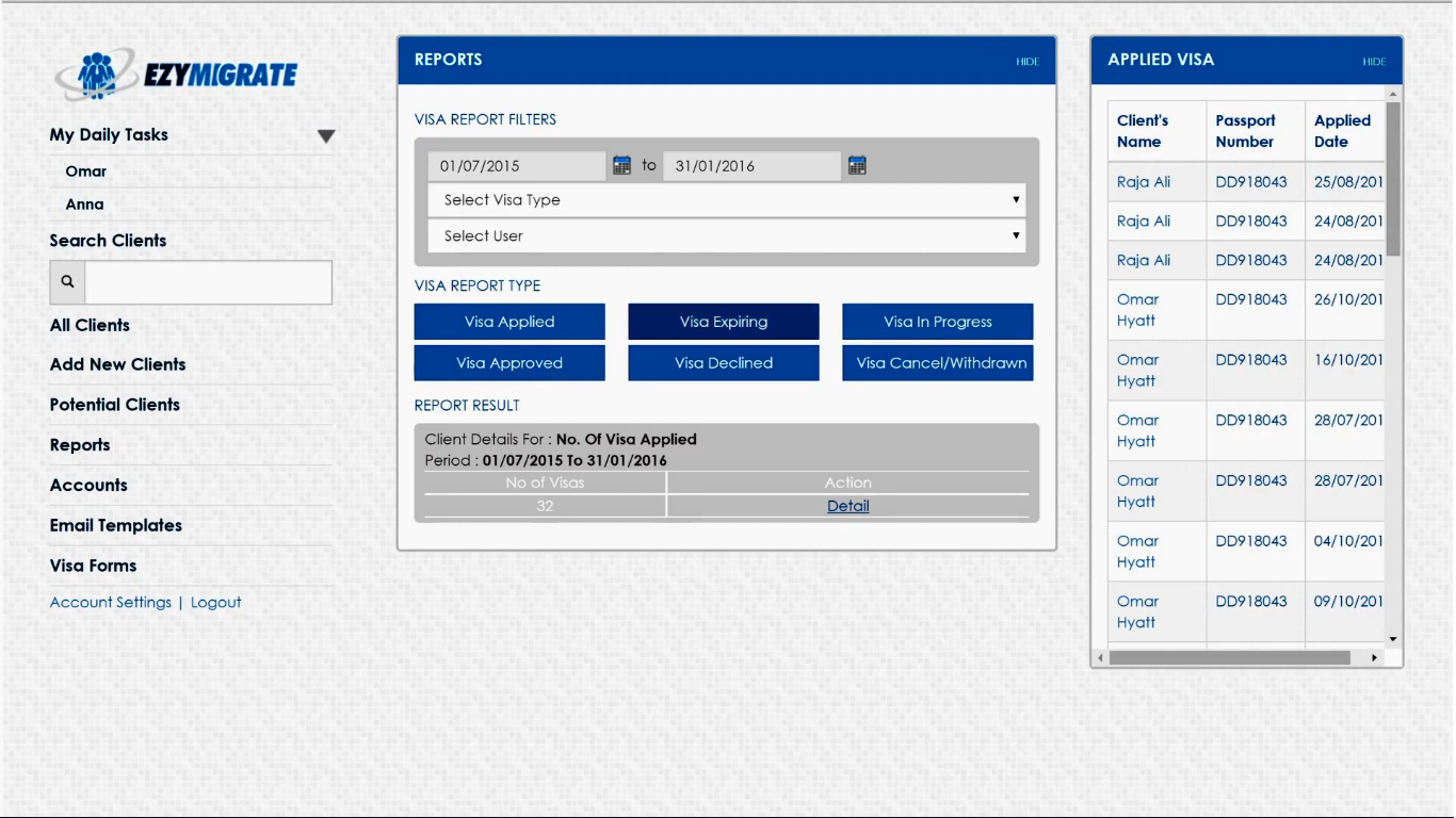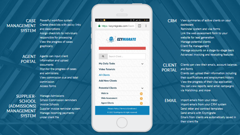 Ezymigrate is the Immigration Software used for the below functionalities.