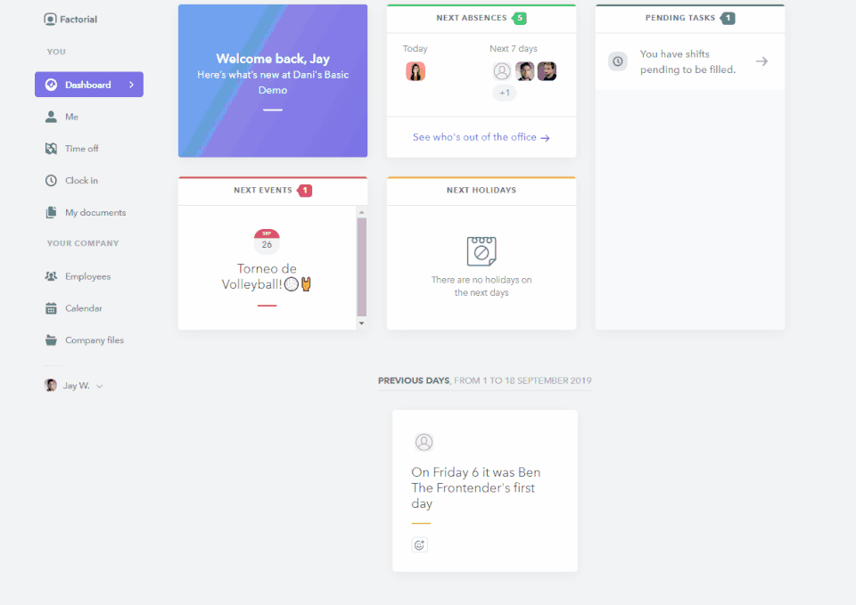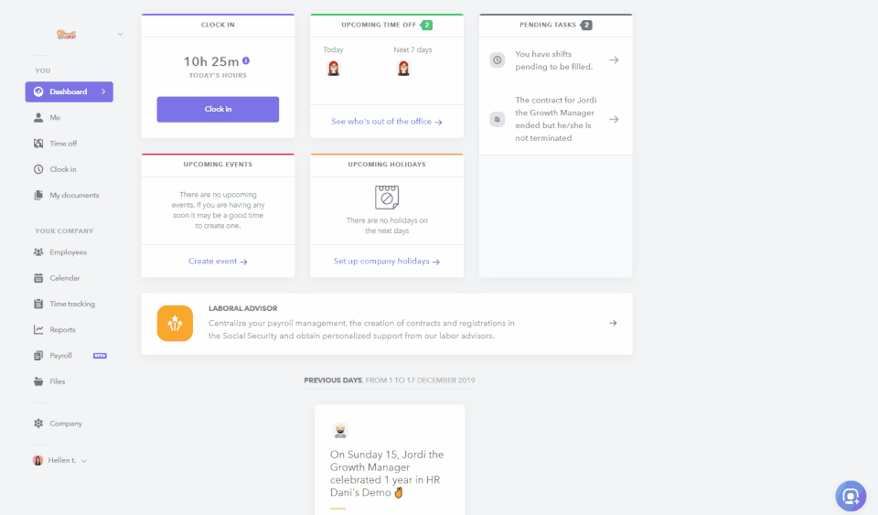 I can manage my daily and weekly hours. Also in the company all the holidays are being managed in Factorial