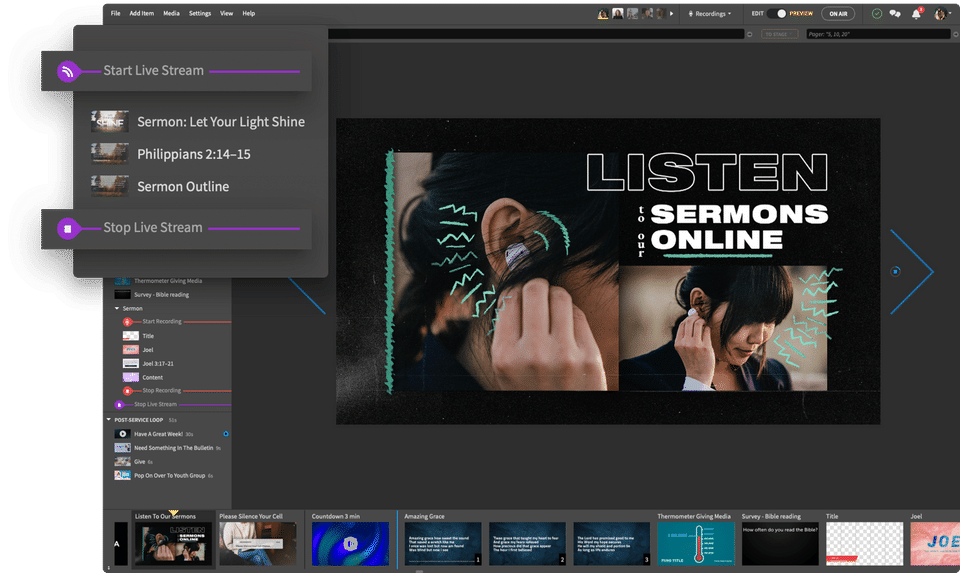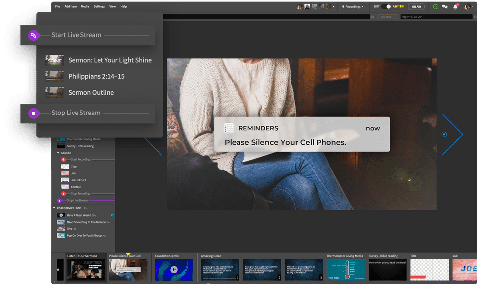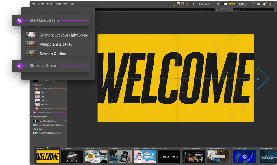 Faithlife Proclaim is the Church Management Software used for the below functionalities.