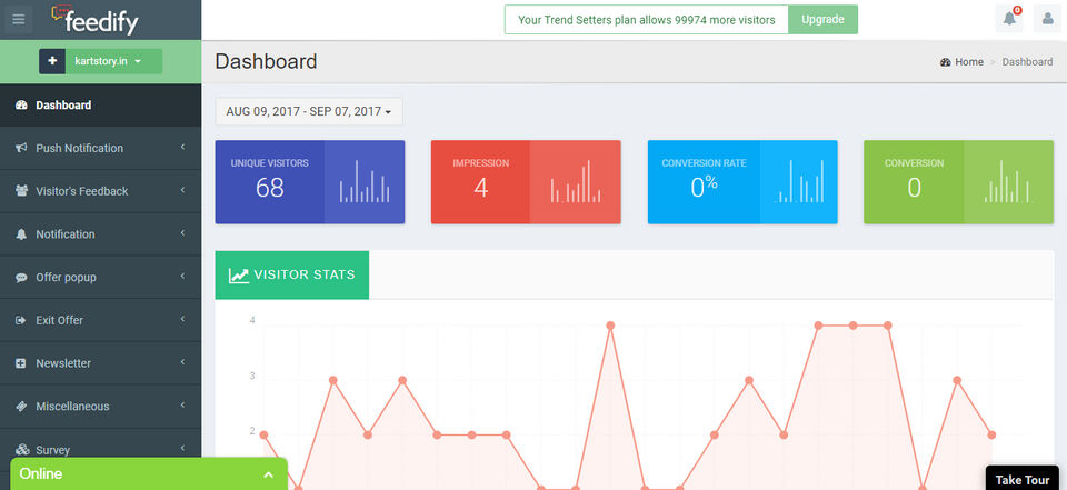 Awesome service, I can send a message to all my subscribers at one time and each time website traffic increases a lot. They made the best way to earn money with their free push notification service. Thank you Feedify for making it simple to earn money with website traffic.