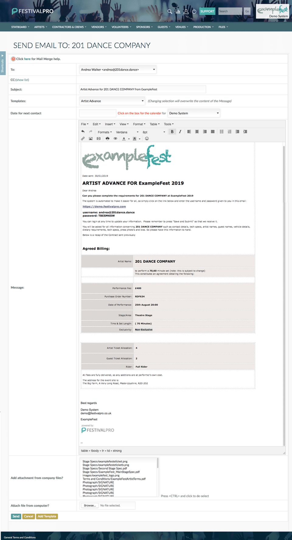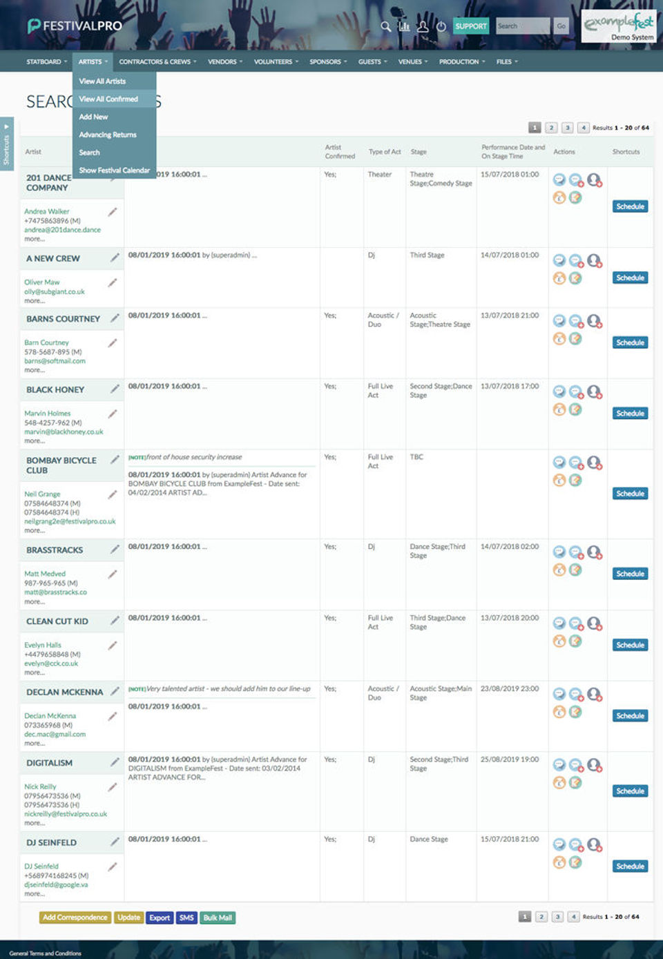 FestivalPro is the Event Management Software used for the below functionalities.