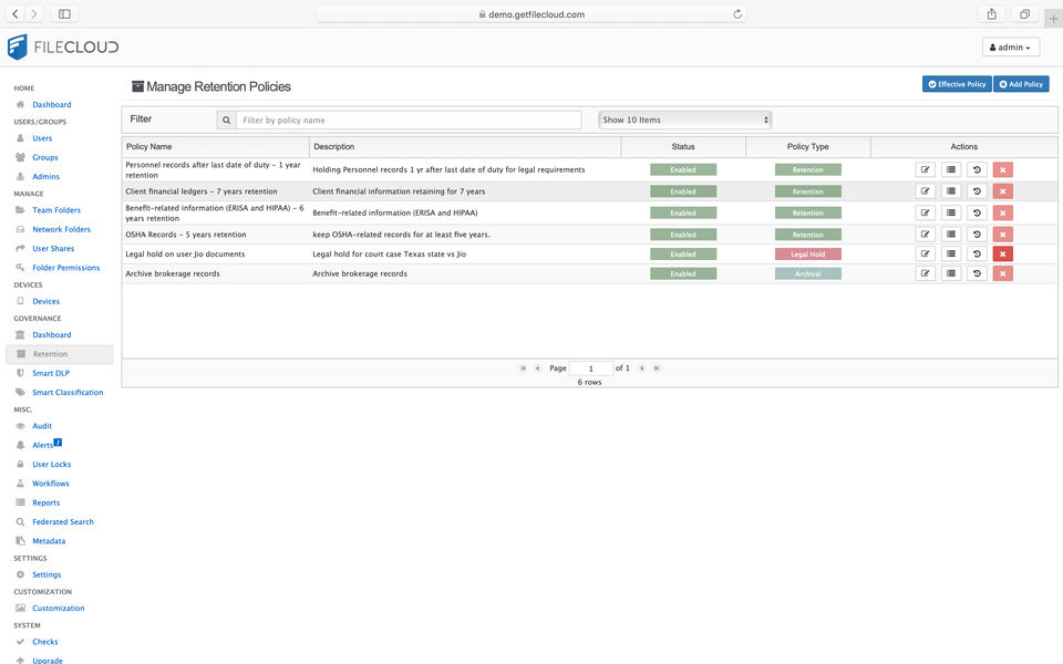 - Governance – Retention