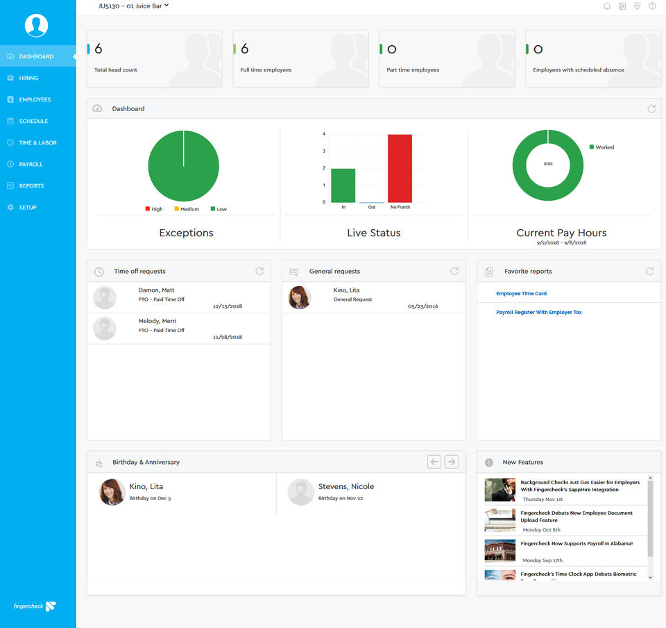 Fingercheck provides Business Hours,Online (Ticket) support.