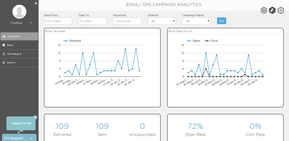 We signed-up for FirstHive to primarily manage our Email campaigns. We send a large volume of emails every month but never faced a problem in delivery. It's smooth. Now, we have also started to manage our facebook and twitter accounts on FirstHive. Will recommend it to all.