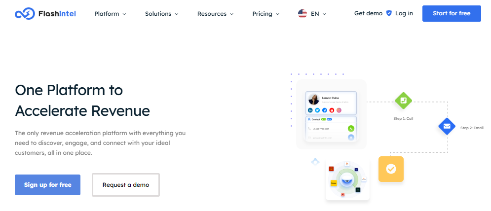FlashInfo also features FlashRev, a revenue acceleration engine that enhances outbound productivity with automated task flows, CRM syncing, call intelligence, and analytics. It consolidates lead enrichment, campaign management, and customer journey tracking into one centralized platform.