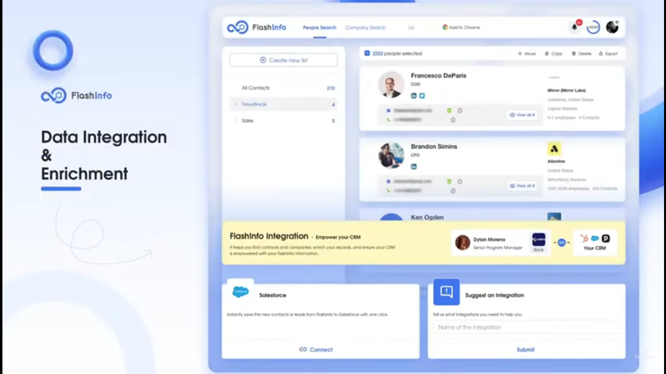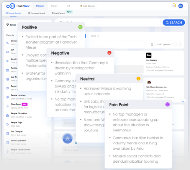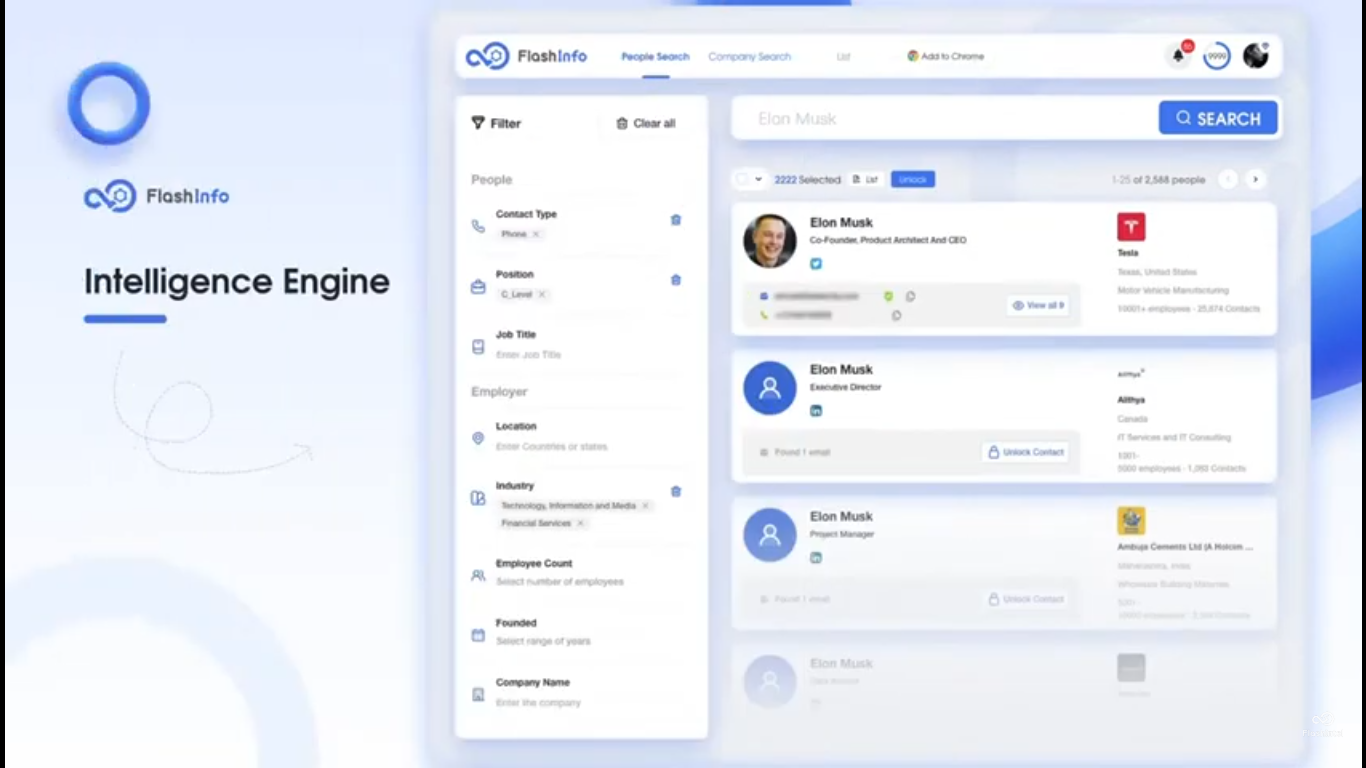 In essence, FlashInfo is more than just a sales data tool—it is an all-in-one intelligence ecosystem that empowers businesses to build deeper connections, reduce sales cycles, and consistently exceed revenue targets through AI-enhanced insights and automation.