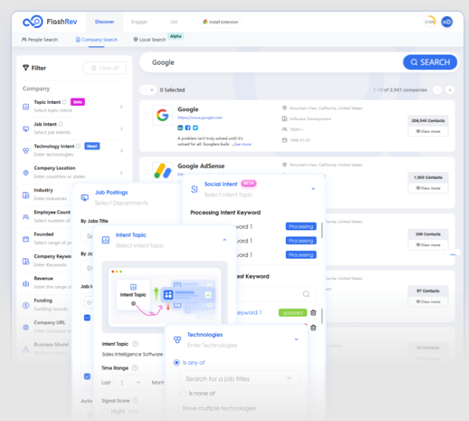 FlashInfo is a unified revenue intelligence platform that transforms how organizations discover, engage, and convert high-value B2B prospects. Designed to support sales and marketing teams, the software combines vast real-time contact data, predictive buyer intent signals, and AI-driven outreach automation to enhance deal velocity and customer engagement.