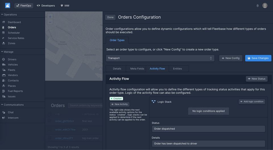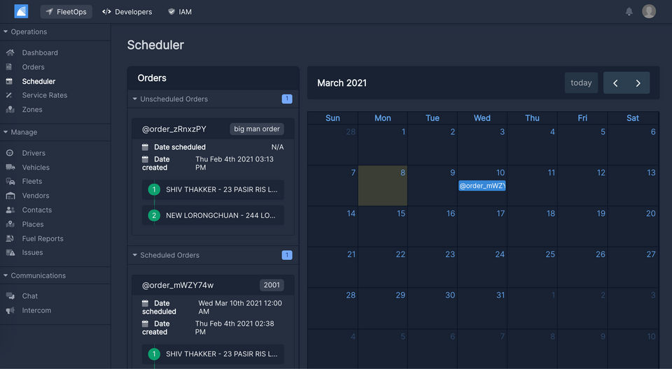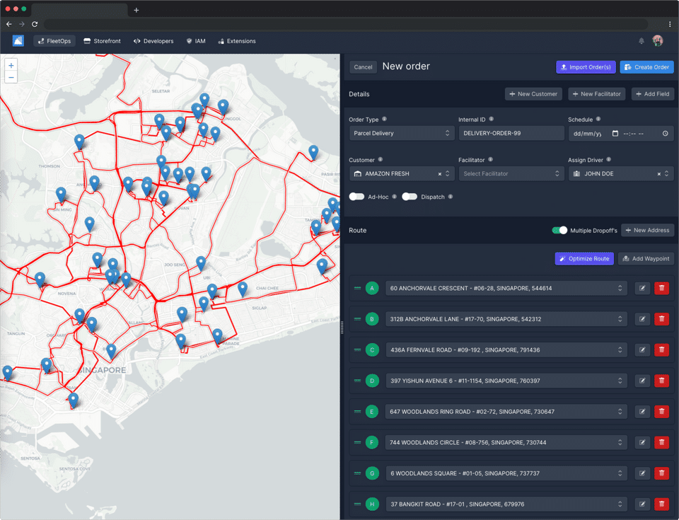 Fleetbase is the Fleet Management Software used for the below functionalities.