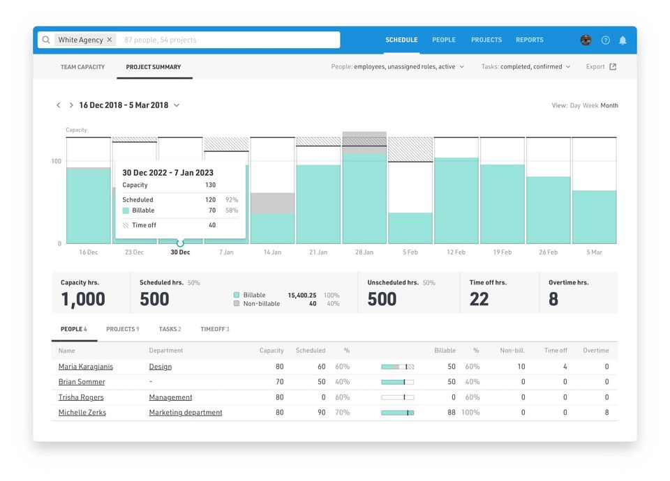 - Simple to get a full picture of a team's scheduled vs capacity percentage