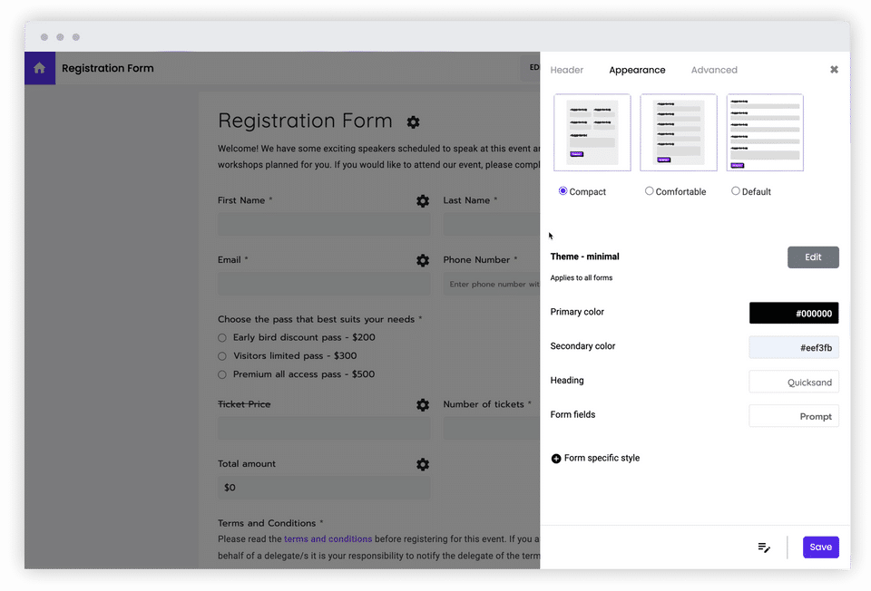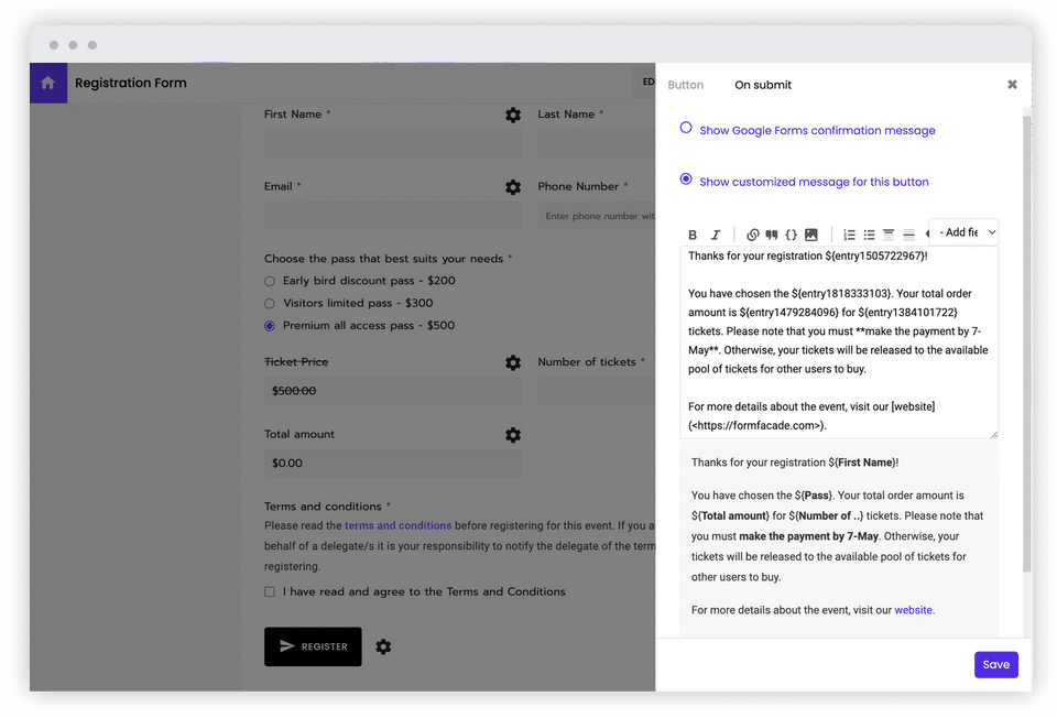 Formfacade is the Online Form Builder Software used for the below functionalities.