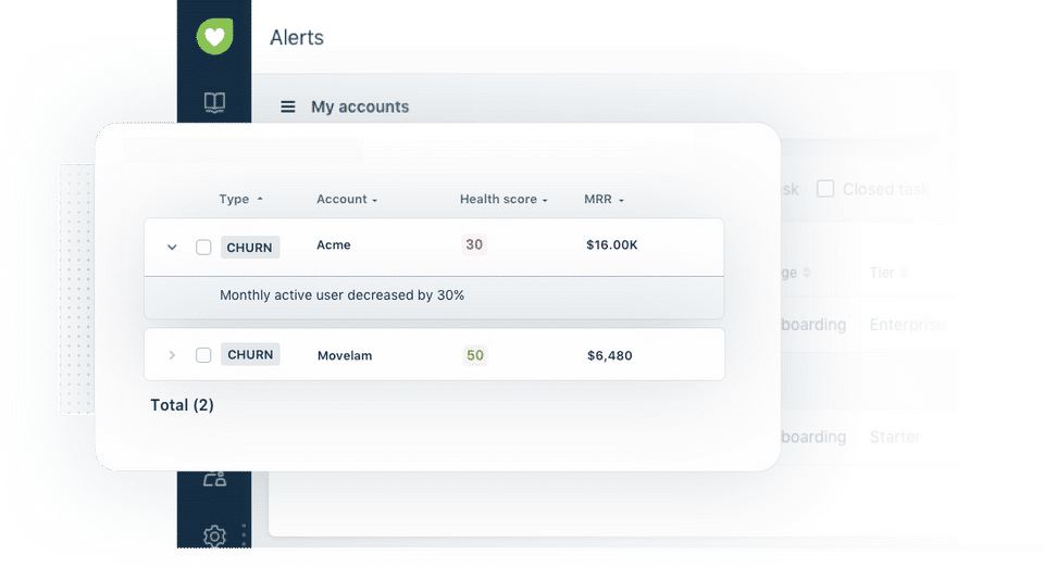- Clear visibility into product usage, engagement, and health scores