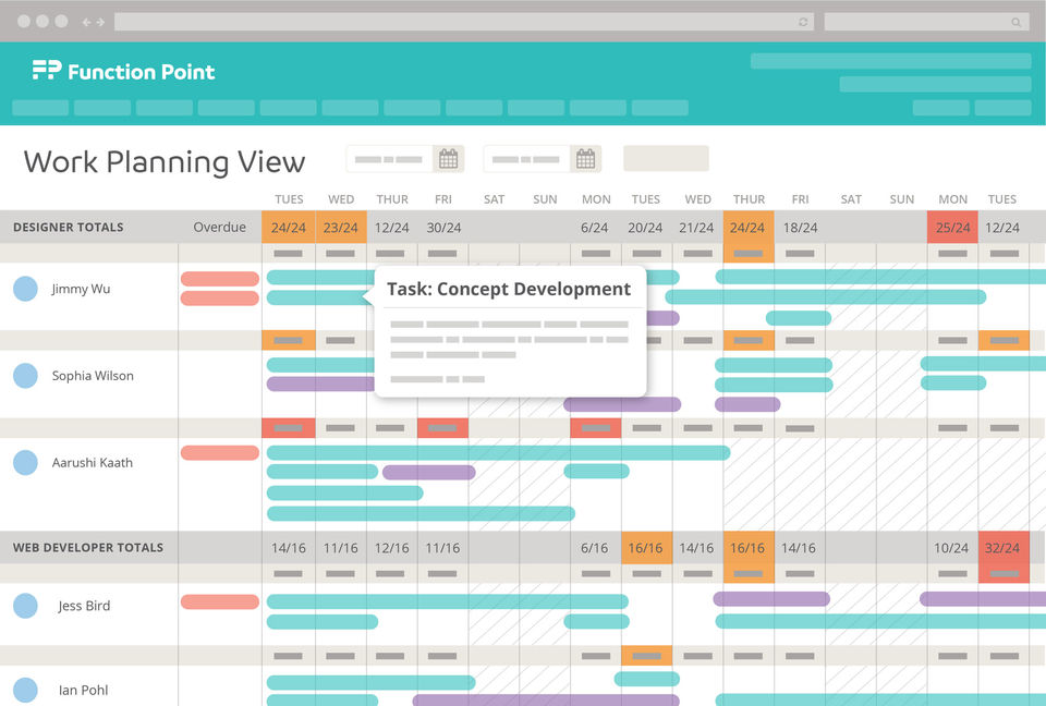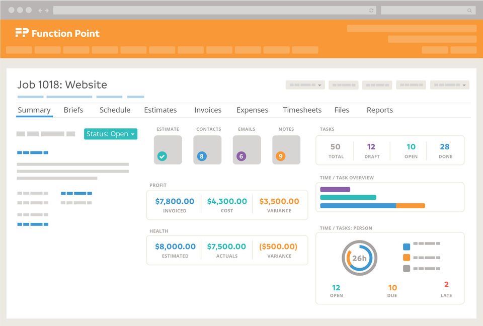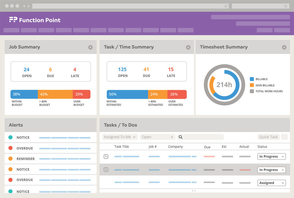 Function Point offers many option for customizing our work, as a small company we needed a product that would offer us many functions instead of limiting us to one operation. I like schedule and calendar format, we are even able to upload iCal for everyone. We use tasking from a note so we can submit quick work orders and the note function is very important feature to us.