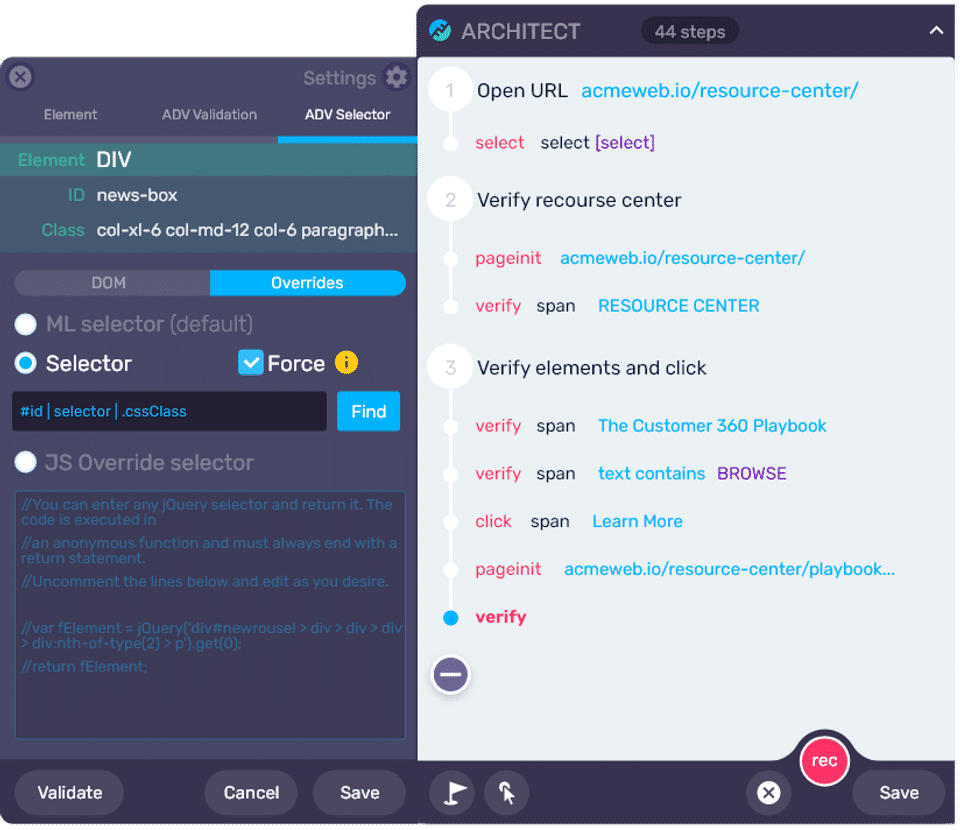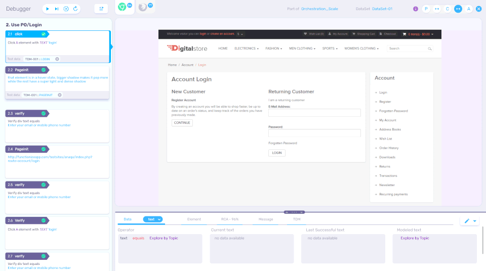 Functionize is the Automated Testing Software used for the below functionalities.