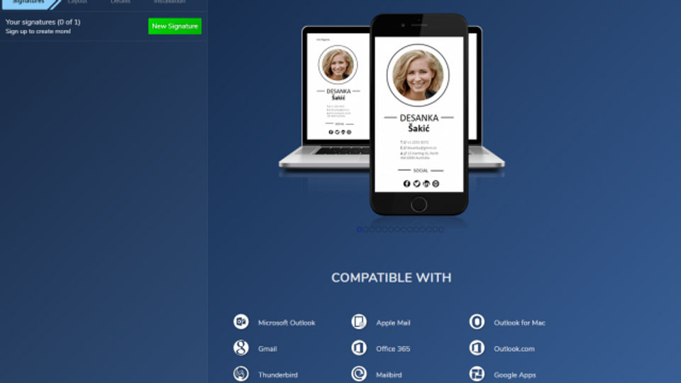 They have plenty of templates that you can choose from to create a signature. Once you have chosen one, it is completely customizable to any colors / fonts / photos that you would like to add.