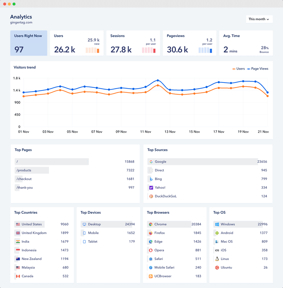 GingerTag is the Web Analytics Software used for the below functionalities.