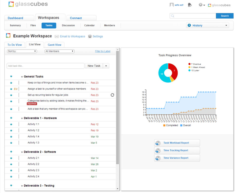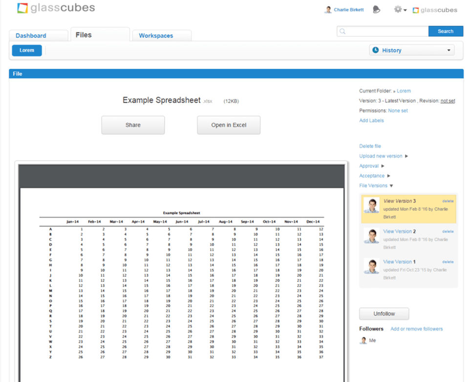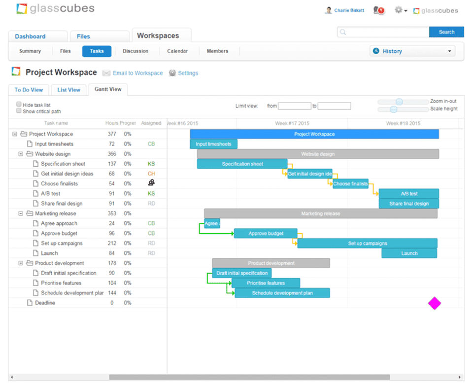 This is the first time that I have used a workspace for collaboration, and it is a very good service. Particularly love features such as file versioning, making updates for files easier without the need to replace them. I use Glasscubes as a student to management colaboration and to have a private platform at university so it's a great tool to use. Having only recently started on it, I look forward to using it a lot more.There are something things that I wish could be added like a 'Image upload' that allows me to select a file from my computer rather than link one.
