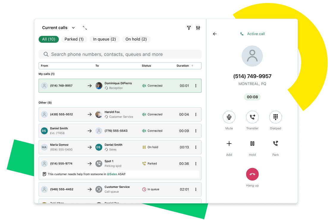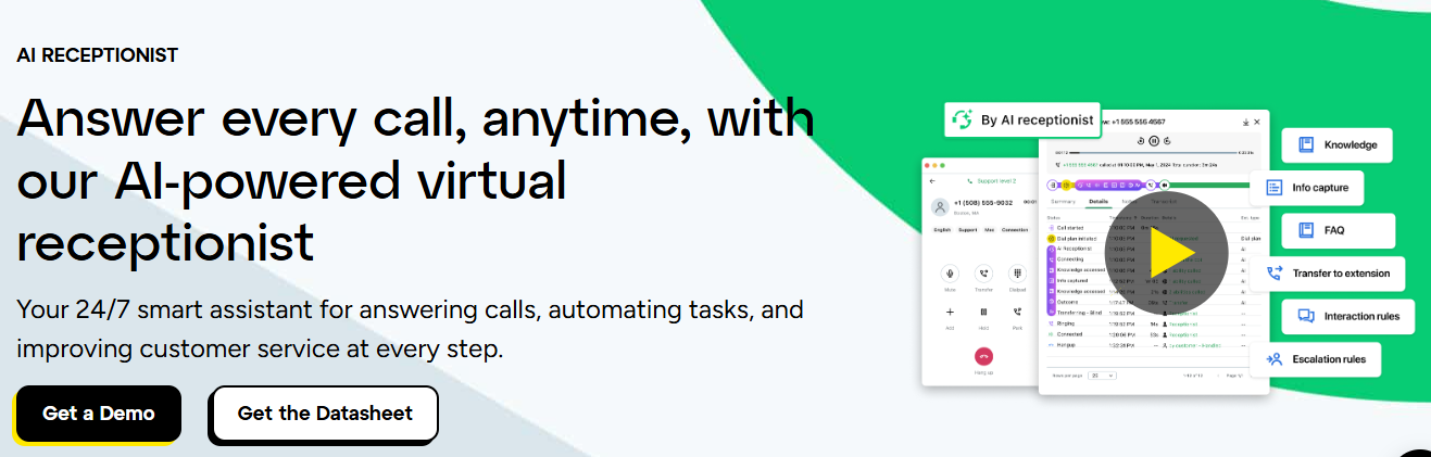 - AI-Powered Tools: AI Receptionist, call/meeting summaries, real-time sentiment analysis, and automated call logging.