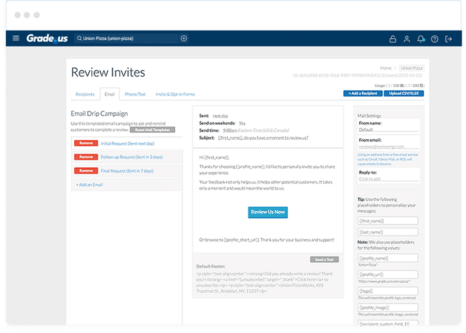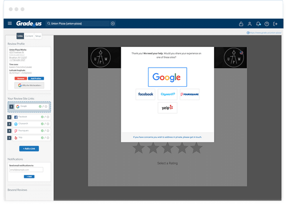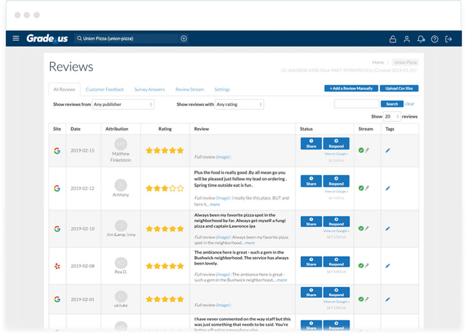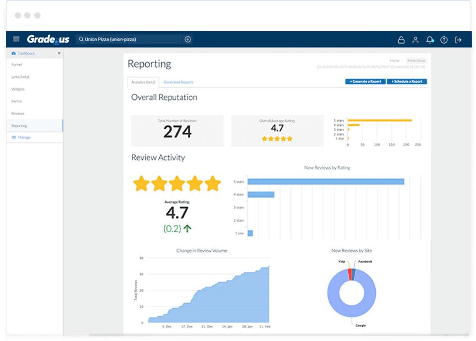 Grade.us is the Reputation Management Software used for the below functionalities.