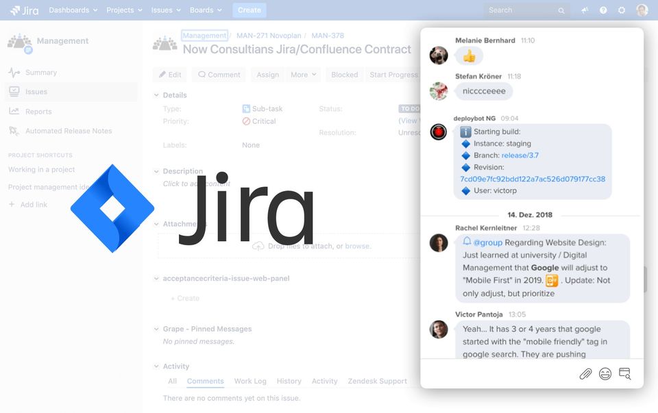 I really like that grape is a professional messenger that can integrate with other work-management or project oriented software, it allows staff to communicate on various projects/tasks.