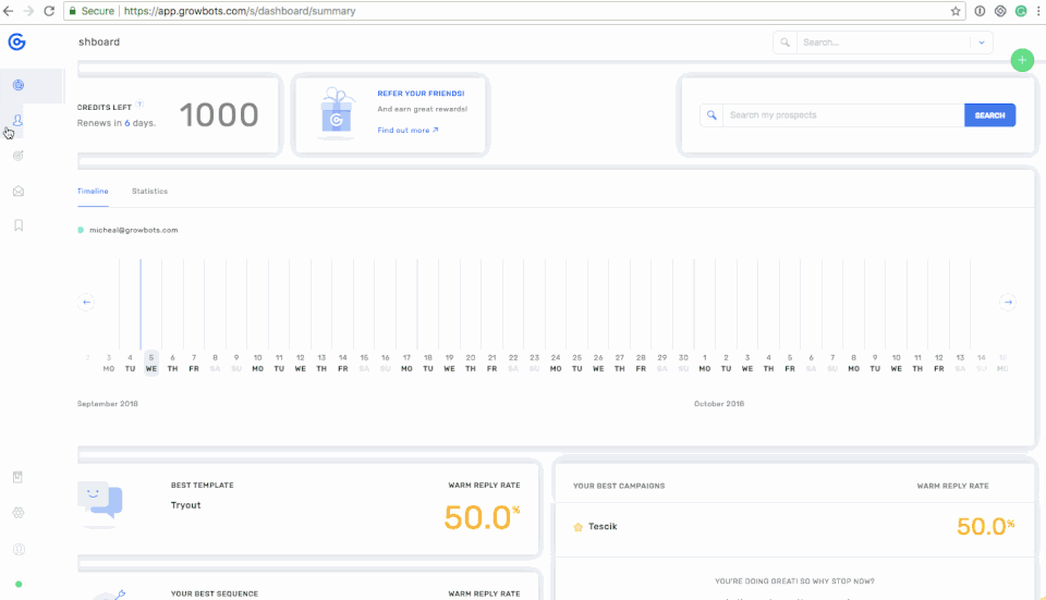 It's time-consuming to manually ensure each contact is still with the company (Growbots claims they refresh their data each quarter - I've found records that have 2 year old information) and not located in the EU (support claimed they removed all European leads due to GDPR - I constantly find them and have to remove). After this manual process of looking at each lead, there is still a ~7% bounce rate. The product itself is not intuitive, features like OOO rescheduling do not work, and support has the constant refrain of "we've let our devs know, sorry"