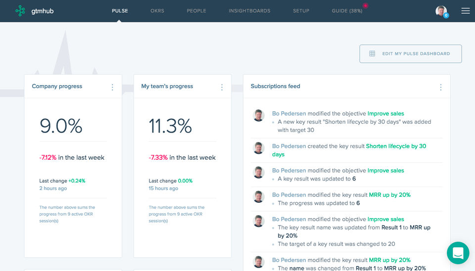 gtmhub is supposed to be a tool to manage company wide OKRs. Currently the benefits are limited as it is unclear how someone's ORKs are related to those of their team's, department's and company's.