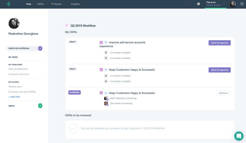 - HR Teams: Track employee performance with OKRs.
