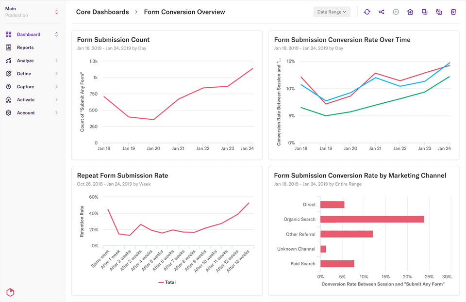 The ability to analyze is ridiculously bad. I've been doing web analytics for four years now, and I'm pretty good at it. I find that usually the third level of drill down is where you start getting an answer to your question, and Heap just doesn't allow enough in depth analysis. It feels like an overall funnel analysis tool, and its reporting is just so incredibly basic. It was essentially useless for analysis and acts almost as a glorified tag manager. It also doesn't actually record form fields very well.