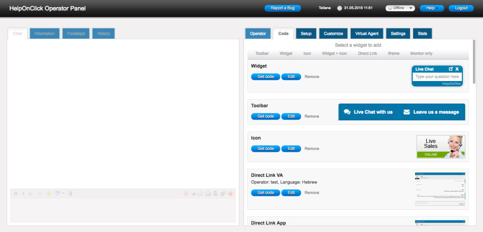 We are a company that offers quality products and we have a team to take control of our customers online. We decided to try Helponclick for a year on the recommendation of one of our clients and our team is satisfied with the ability to configure this software with great ease and the ability to chat from anywhere. It uses a range of statistics on department activities such as operator reports or status reports allowing us to improve our workflow