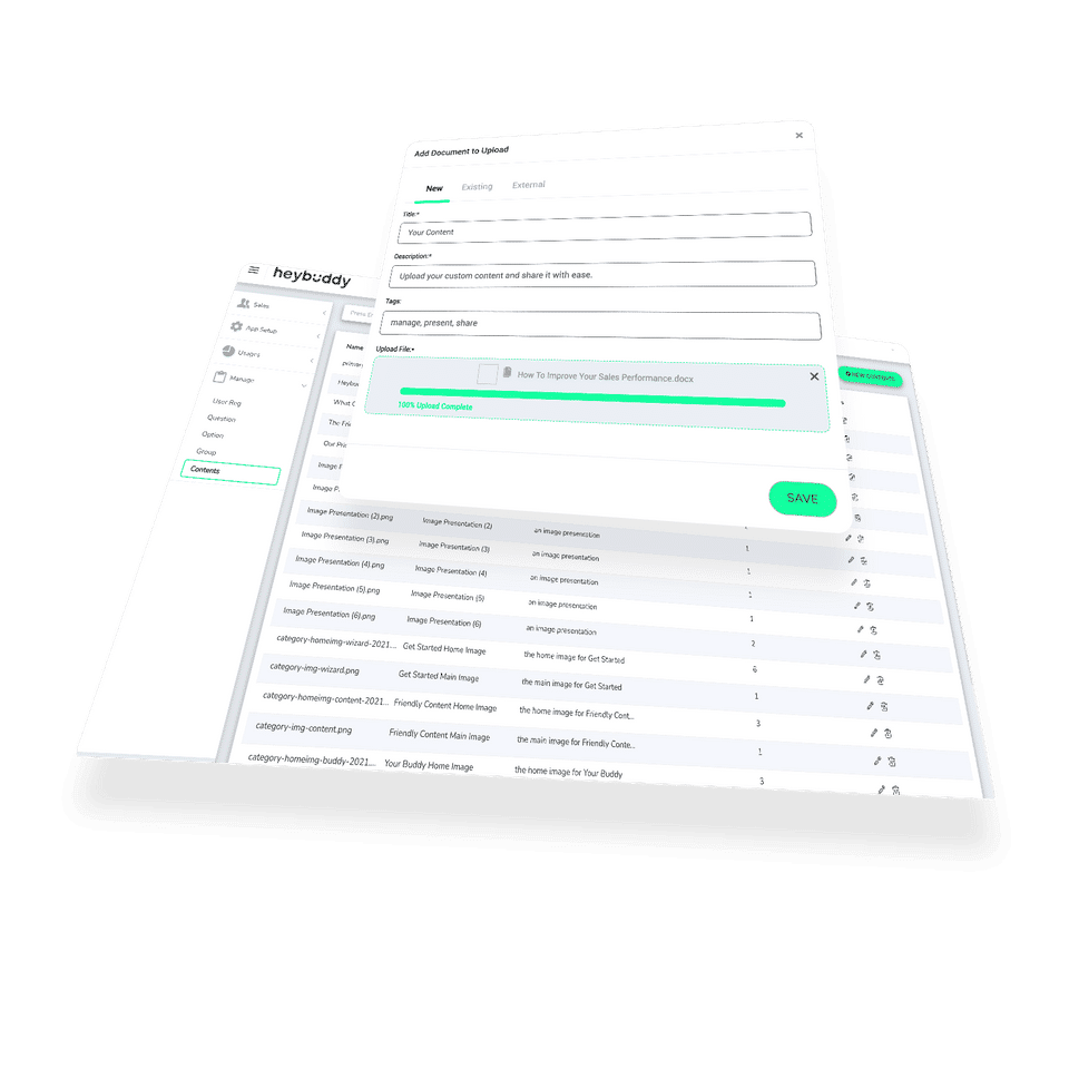 HeyBuddy is the Sales Enablement Software used for the below functionalities.