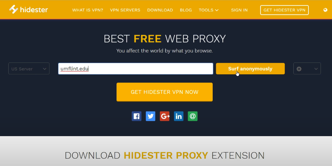 - For the Free Web Proxy: Navigate to the Hidester website, enter the URL of the website you want to visit in the proxy bar, choose a server location, and click Surf Anonymously. No Hidester login or download is required.