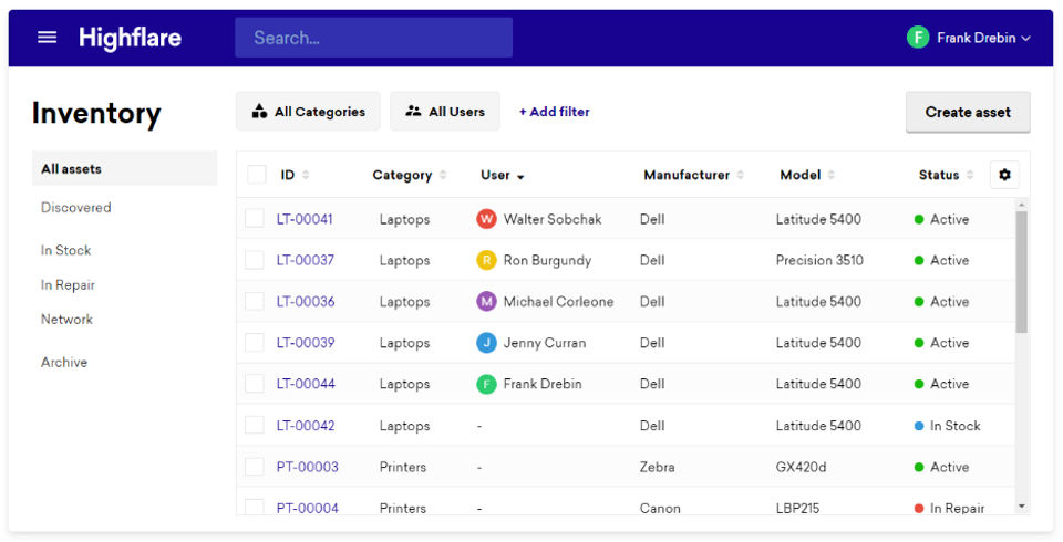 Highflare is the IT Asset Management (ITAM) Software used for the below functionalities.