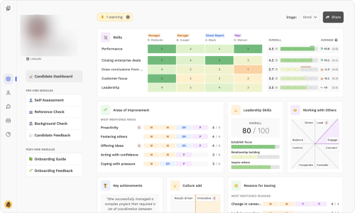- Automated Reference Checks: Collects references seamlessly and analyzes them with AI.
