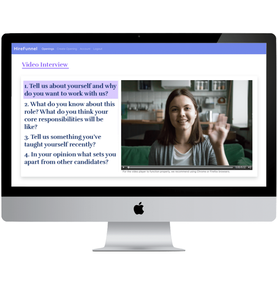 Hire Funnel is the Video Interviewing Software used for the below functionalities.