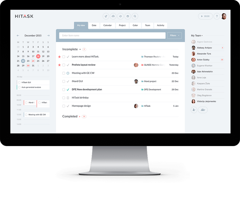 Hitask is the Task Management Software used for the below functionalities.