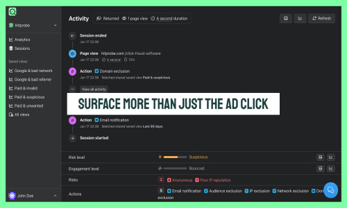 Hitprobe is a defensive web analytics platform with built-in click fraud protection, giving marketers full visibility and control over their traffic quality.