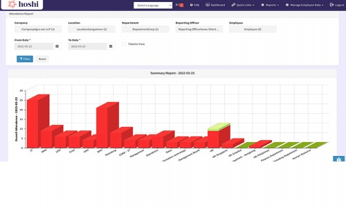 Hoshi HRMS enables employees to have a direct access to their leave and attendance reports, punch events, holiday and work schedules without bothering their supervisors or human resources personnel.