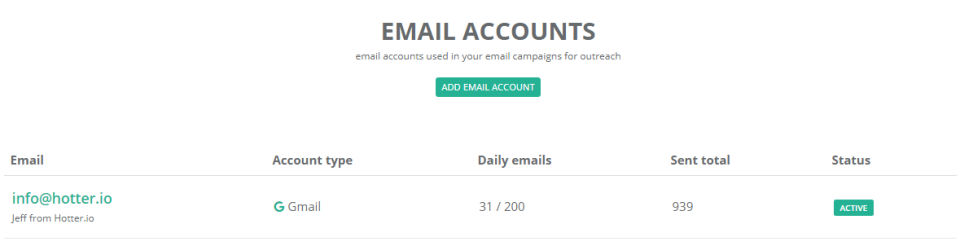 - Connected email accounts : 1