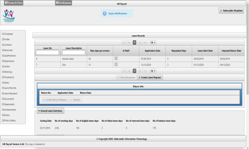 Fully Notification System on portal and by email for Expired Documents, and for amendment requests by Employees.