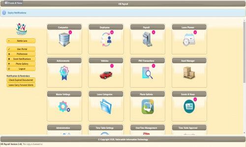 Support multiple companies, Employee Self Service (ESS) with Hierarchy Approval System and User Tracking System.