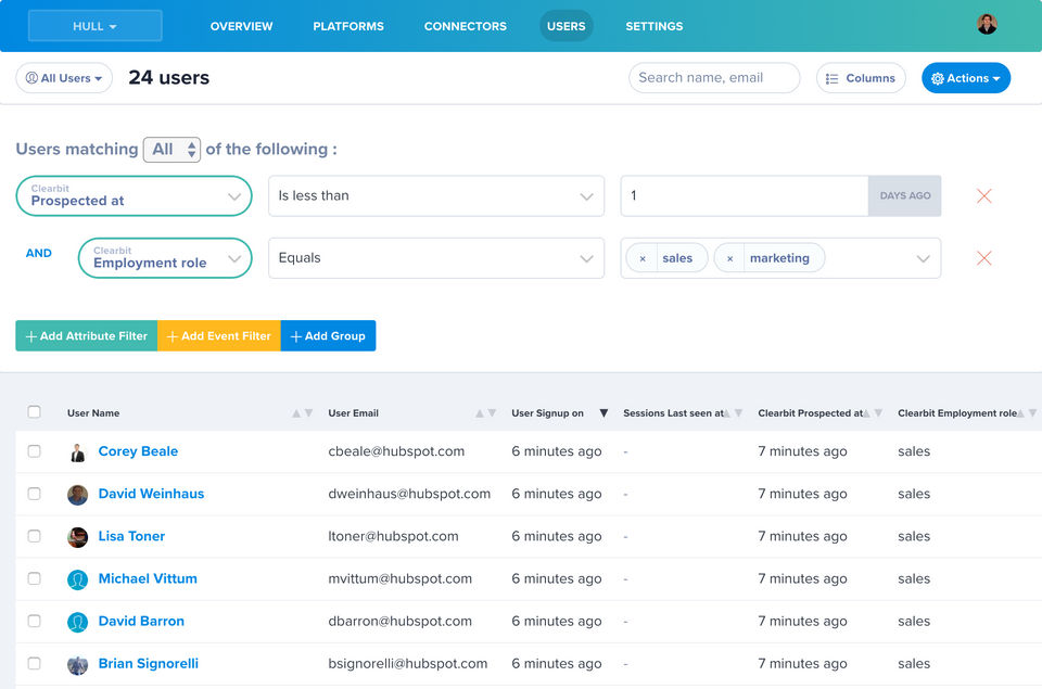 Hull is a very convenient way for us to centralize and aggregate customer data. It is plugged to our CRM as well as our ads platforms. The support team is available everytime you need it.