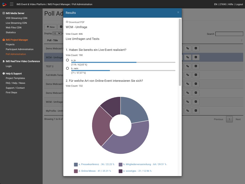 IMS Event & Video Streaming Platform provides Email,Phone,Live Chat support.