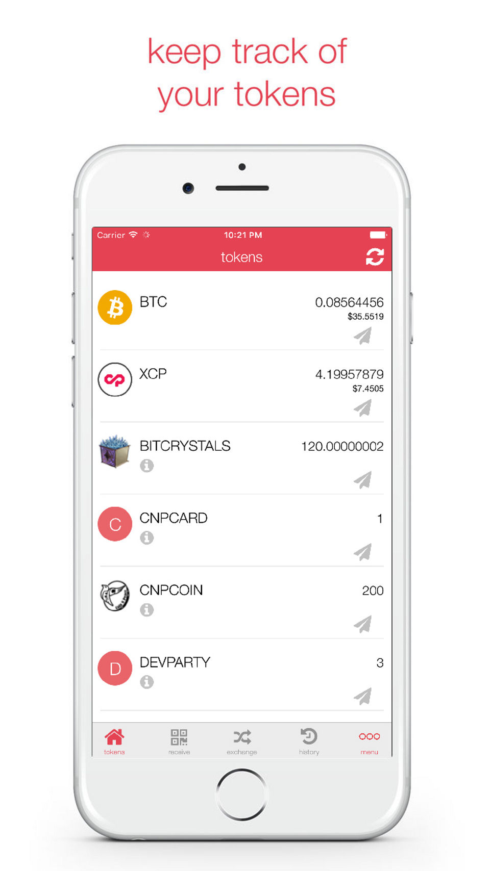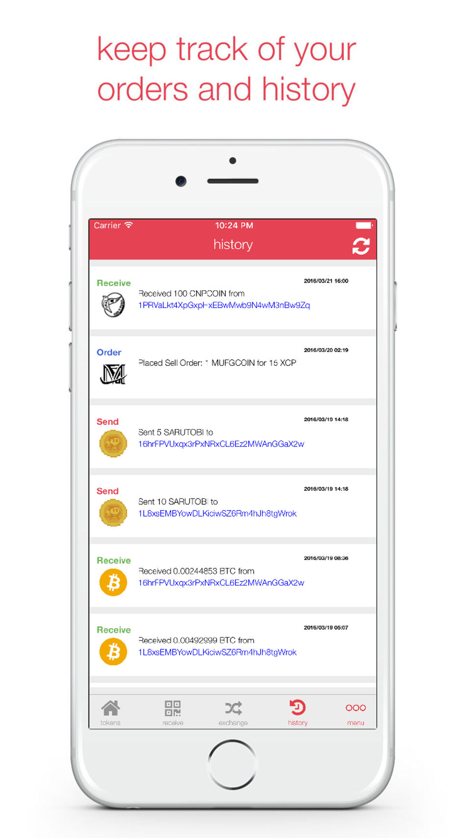 - Create multiple addresses to organize tokens (coming soon)