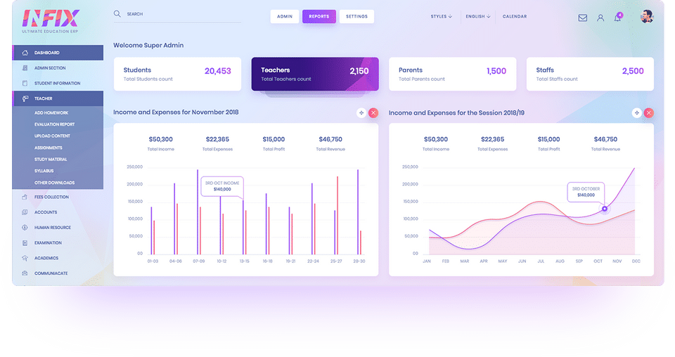 INFIX is the School Management Software used for the below functionalities.
